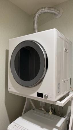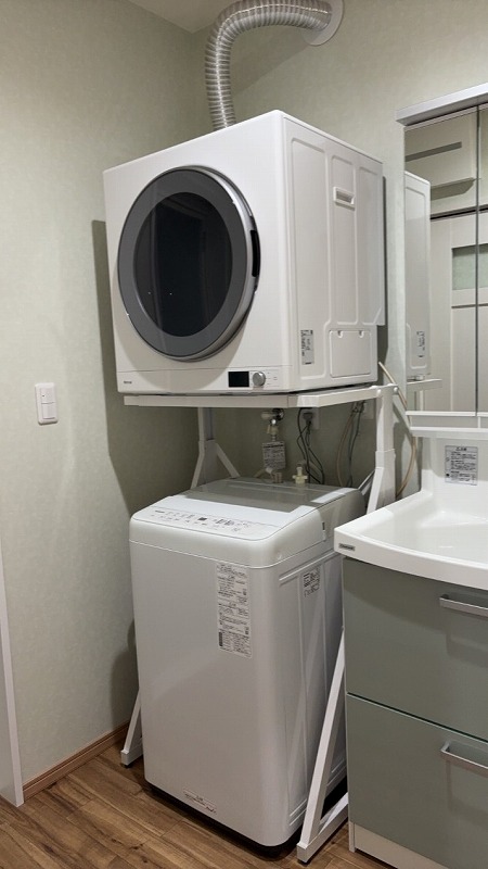 衣類乾燥機の専用台を設置。 専用台は高さも横幅も現場で調節できます。 |