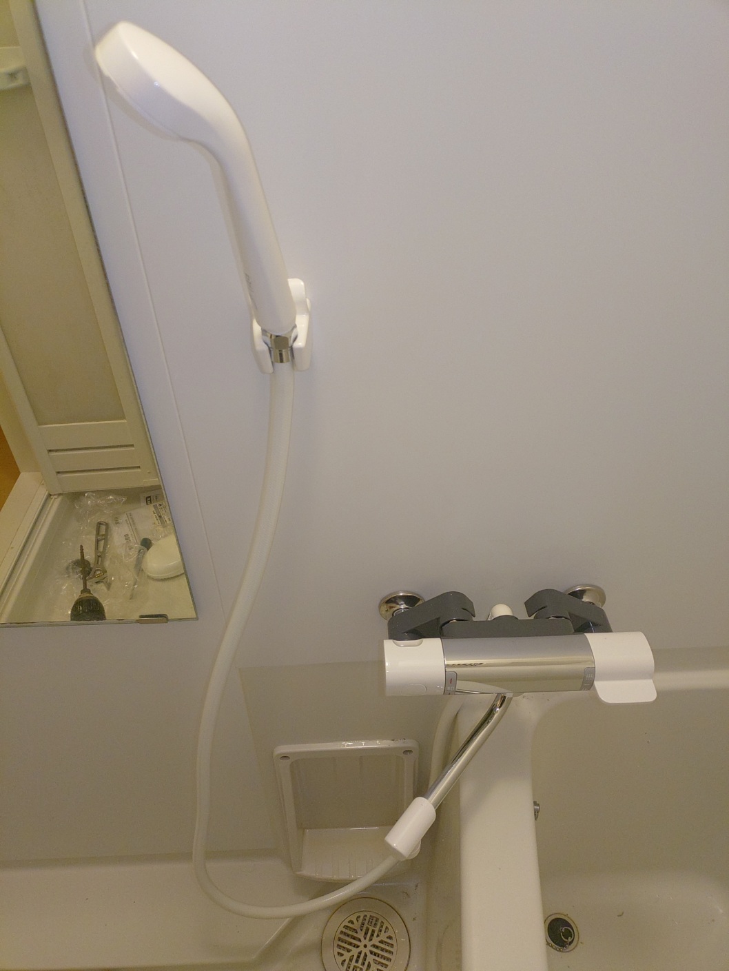 サーモスタット式のシャワーはどこのメーカーでも使い方は同じです。 | シャワー交換後は問題なく使えているようで一安心です。 |