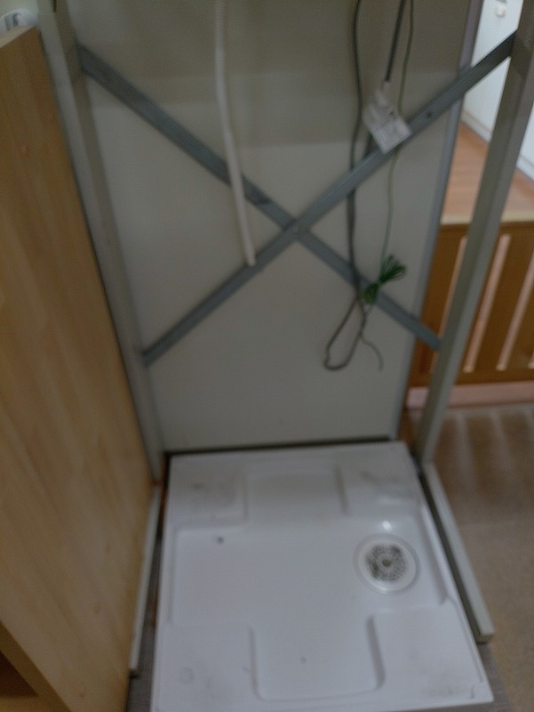 既存の洗濯機を外したところ。 上に衣類乾燥機があります。 |