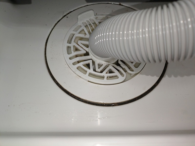 試運転したところ防水パンに水がたまってしまいました。 排水ホースを抜いて排水口を分解したところ服の繊維の塊が排水の流れを狭めていたことが分かりました。 排水口の清掃後に再度試運転したとこと無事排水は流れていきました。 |