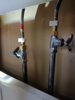 | 水栓交換前の写真 | 接地面の木がぐずぐずになってました | 水栓取り外し後の写真 | ||