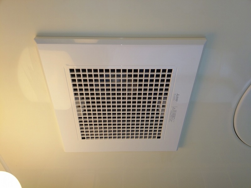 浴室換気扇のカバーを付けて無事交換工事は終了です。 今回取り付けた浴室換気扇はDCモーターを使ってますので省エネ性と静音性が特徴です。 |