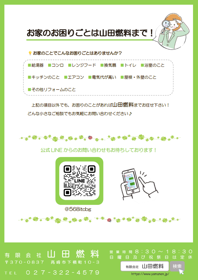 | No.1201 お家のお困りごとは山田燃料までお任せください! [2026/02/26] |
