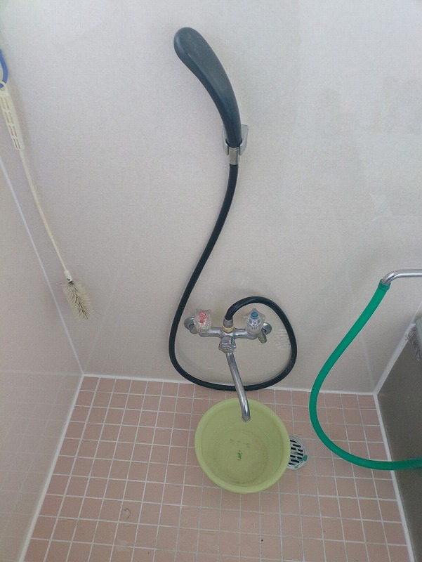 シャワー付近のタイルがいつも乾かず濡れた状態だったので気になっていたそうです。 シャワーの下に桶を置いて水漏れしていることが分かったそうです。 |
