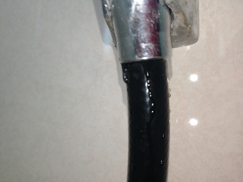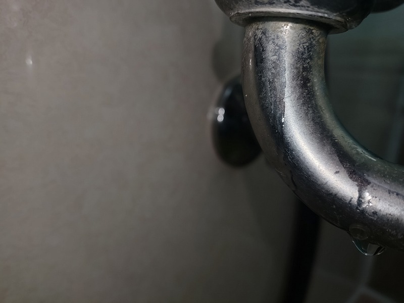 シャワーヘッドの下のところで水漏れが確認できました。 | シャワーの吐水部分の付け根のところでも水漏れが確認できました。 |