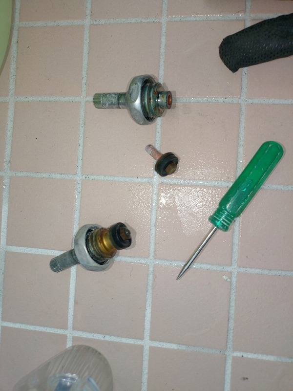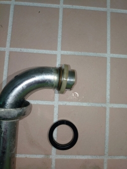 吐水部分を外すと付け根のところが欠けているのが確認できました。 また使われているゴムのパッキンは現在の規格に合わないものでした。 |