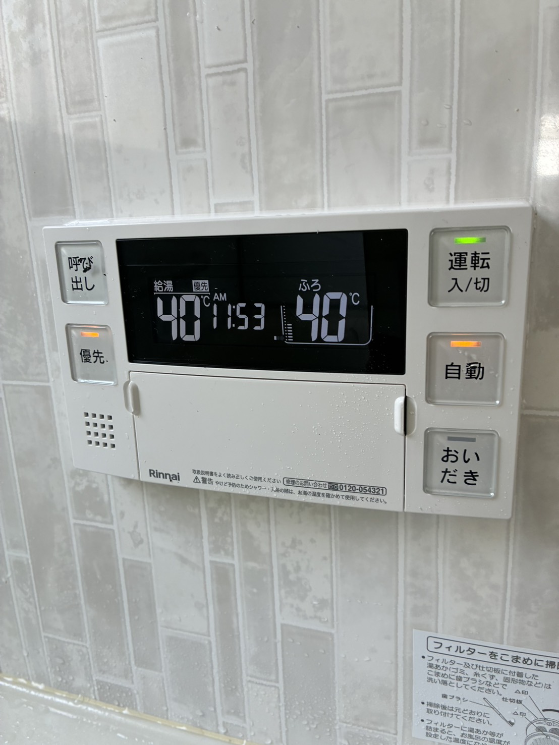 取付後の新しい給湯器の写真 取付後の新しい給湯器の写真2 交換後の新しい台所リモコン 交換後の新しい浴室リモコン